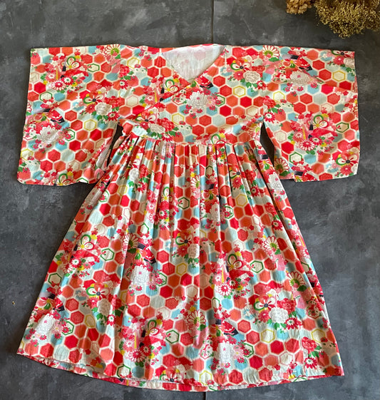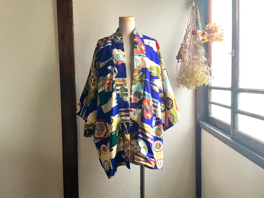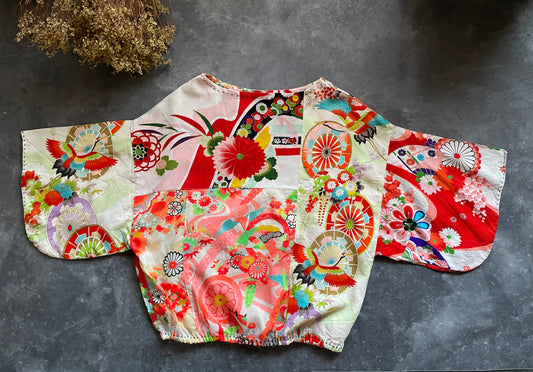 Cardigan jacket remade from a gorgeous flower-patterned kimono 着物と手ぬぐいのリバーシブル変形カーディガン