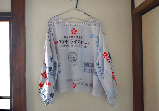Reversible bomber jacket with advertising flags and hand towels 広告旗と手ぬぐいのリバーシブルジャンパー