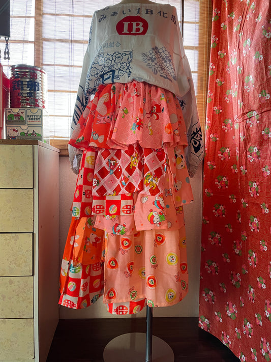 Retro animal patterned children's kimono upcycled ruffled skirt レトロアニマルのフリルスカート