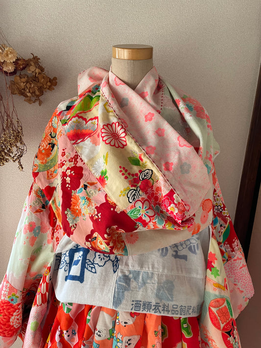 Pullover with patchwork of gorgeous girls' kimonos 女の子着物のパッチワークトップス
