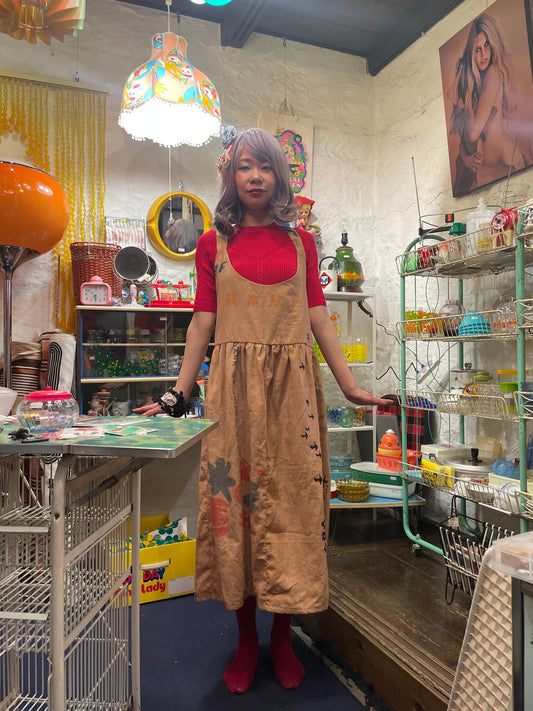 Kakishibu-dyed tenugui apron dress 柿渋染め手ぬぐいのエプロンワンピース