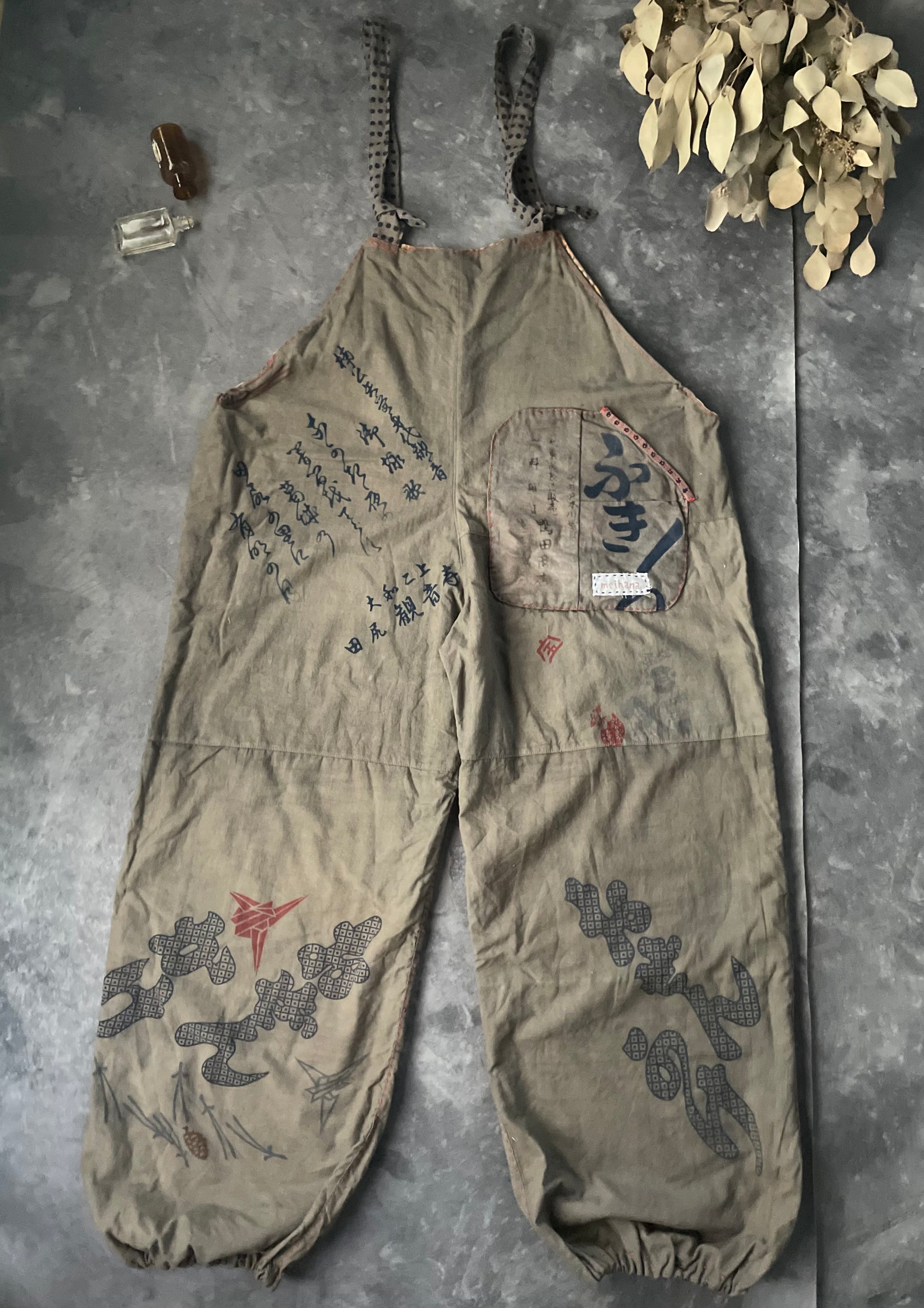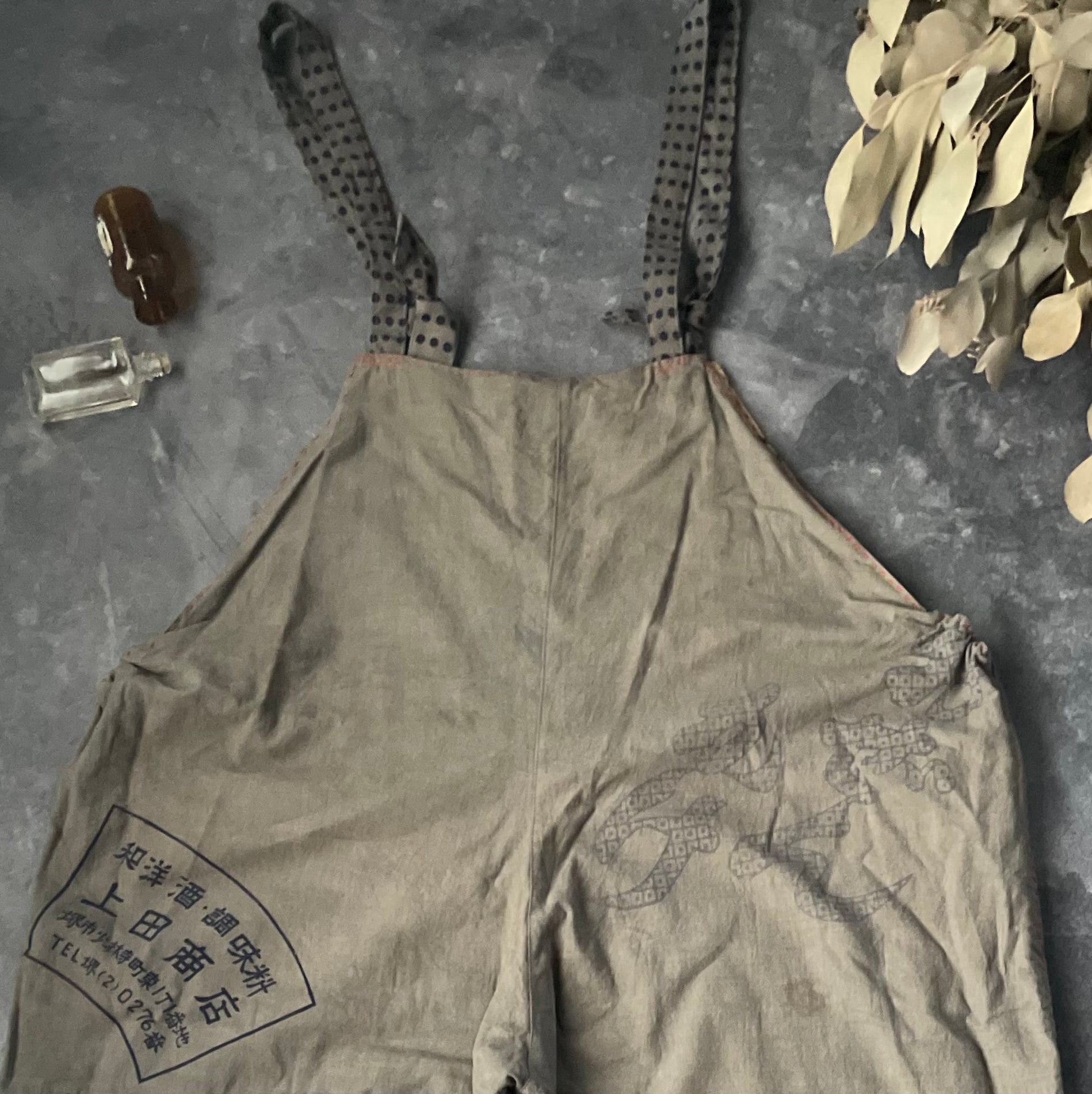 柿渋染めと鉄媒染のリバーシブルサロペットパンツ
