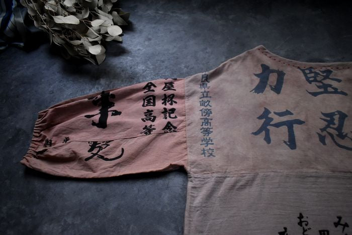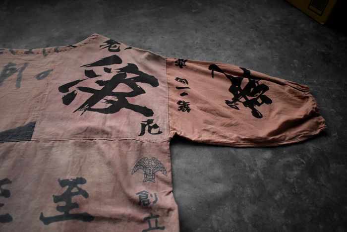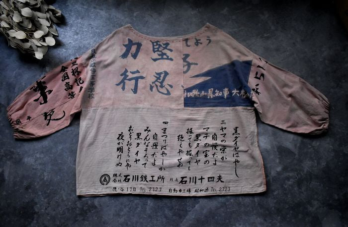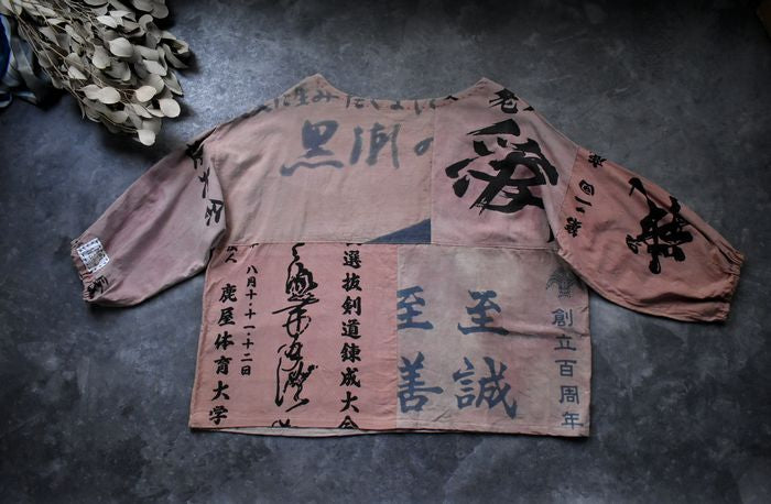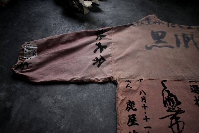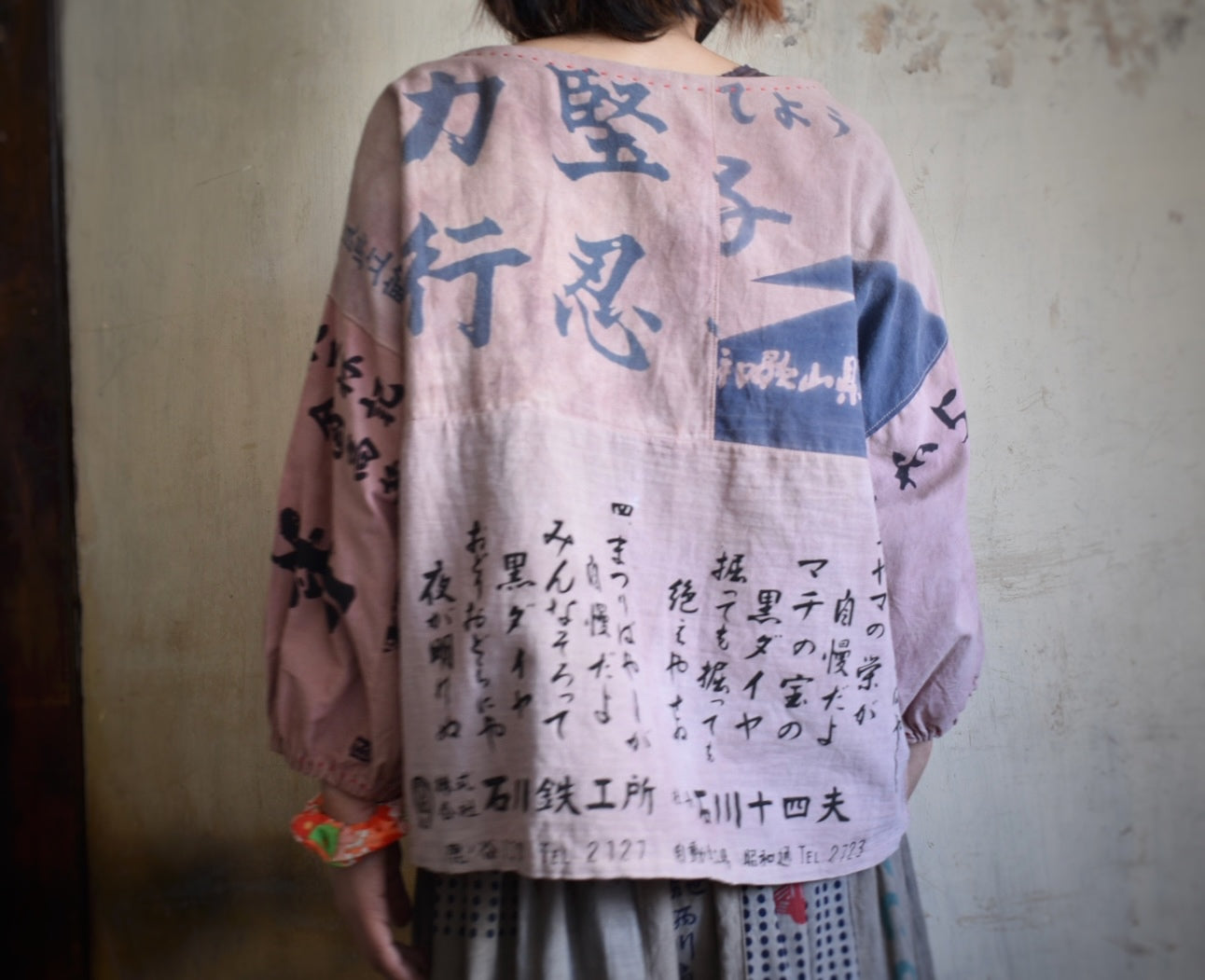 書文字のてぬぐいをパッチワークしてトップスを作りました。