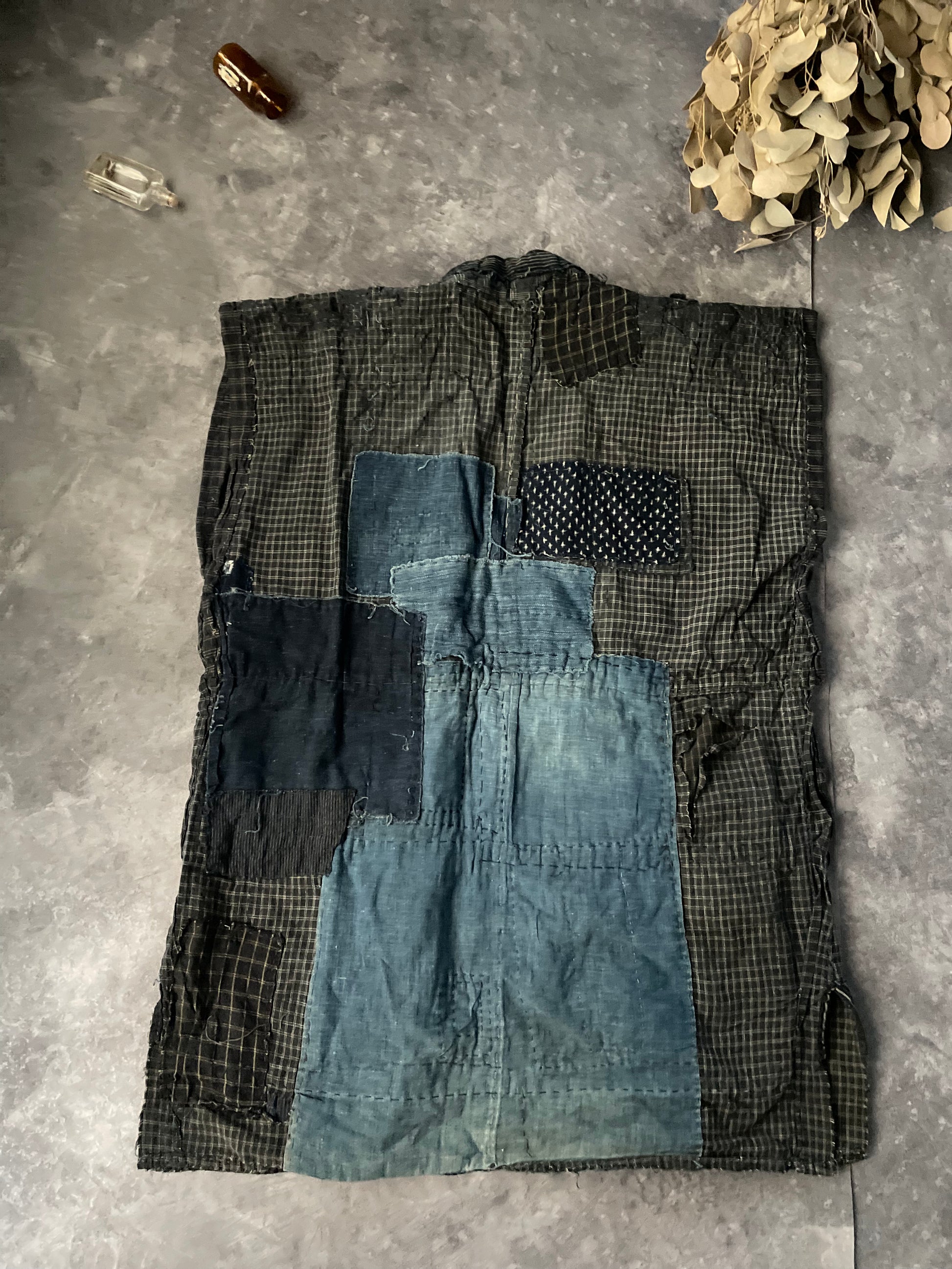 とても雰囲気の良い味わい深い襤褸の野良着からリバーシブルのベストを作りました。